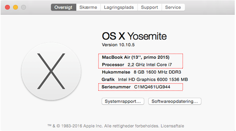 Serienummeret på din Mac findes også her: